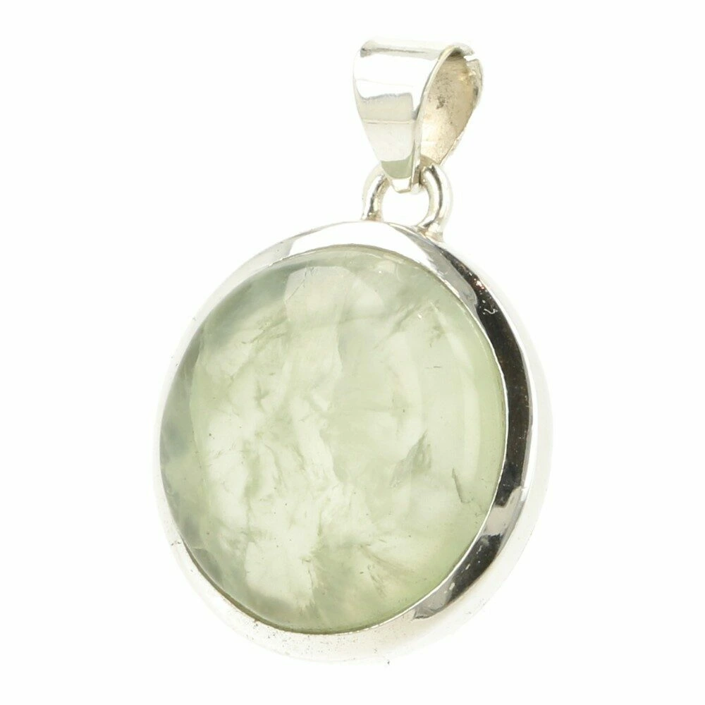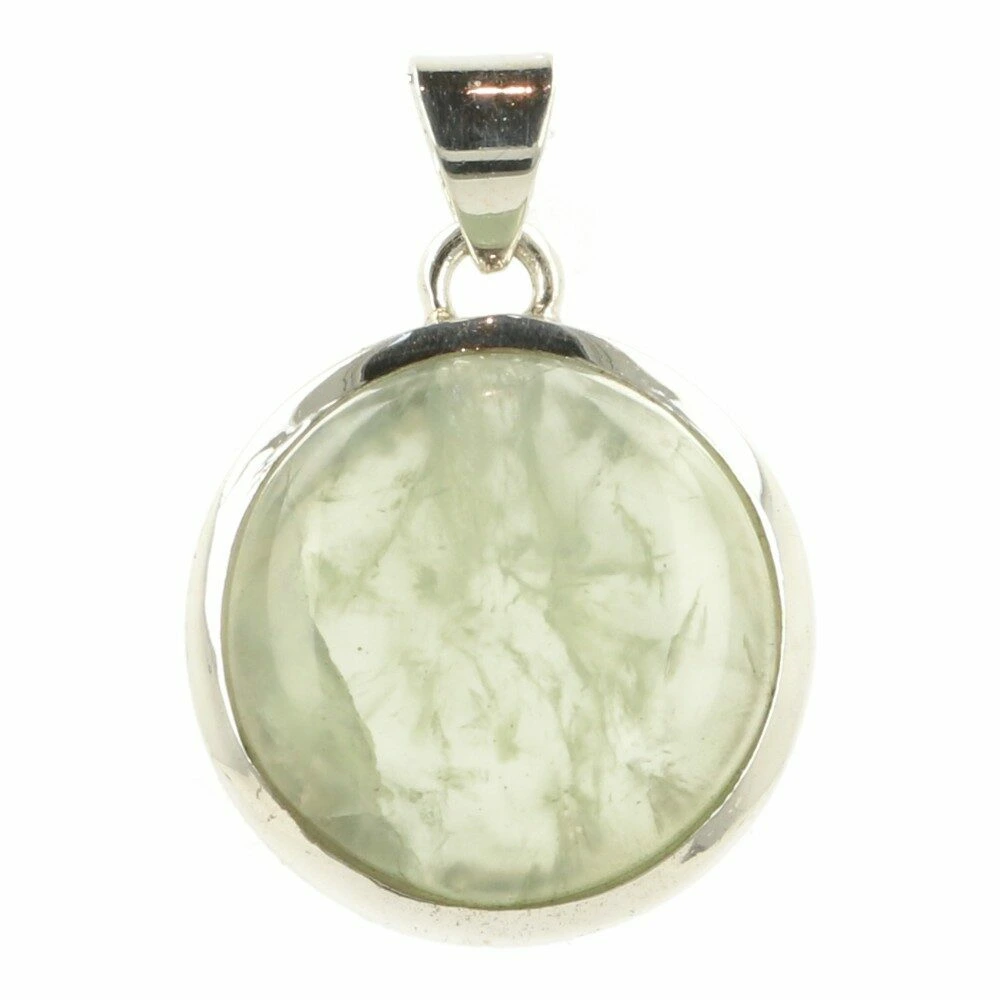 Mooie helder groene prehniet hanger in zilver ‘nr10’. Het zilver is van juwelierskwaliteit 925 sterling zilver. De diameter van de prehniet steen in de hanger is ongeveer 22mm. Je ontvangt de prehniet hanger in zilver van de foto.