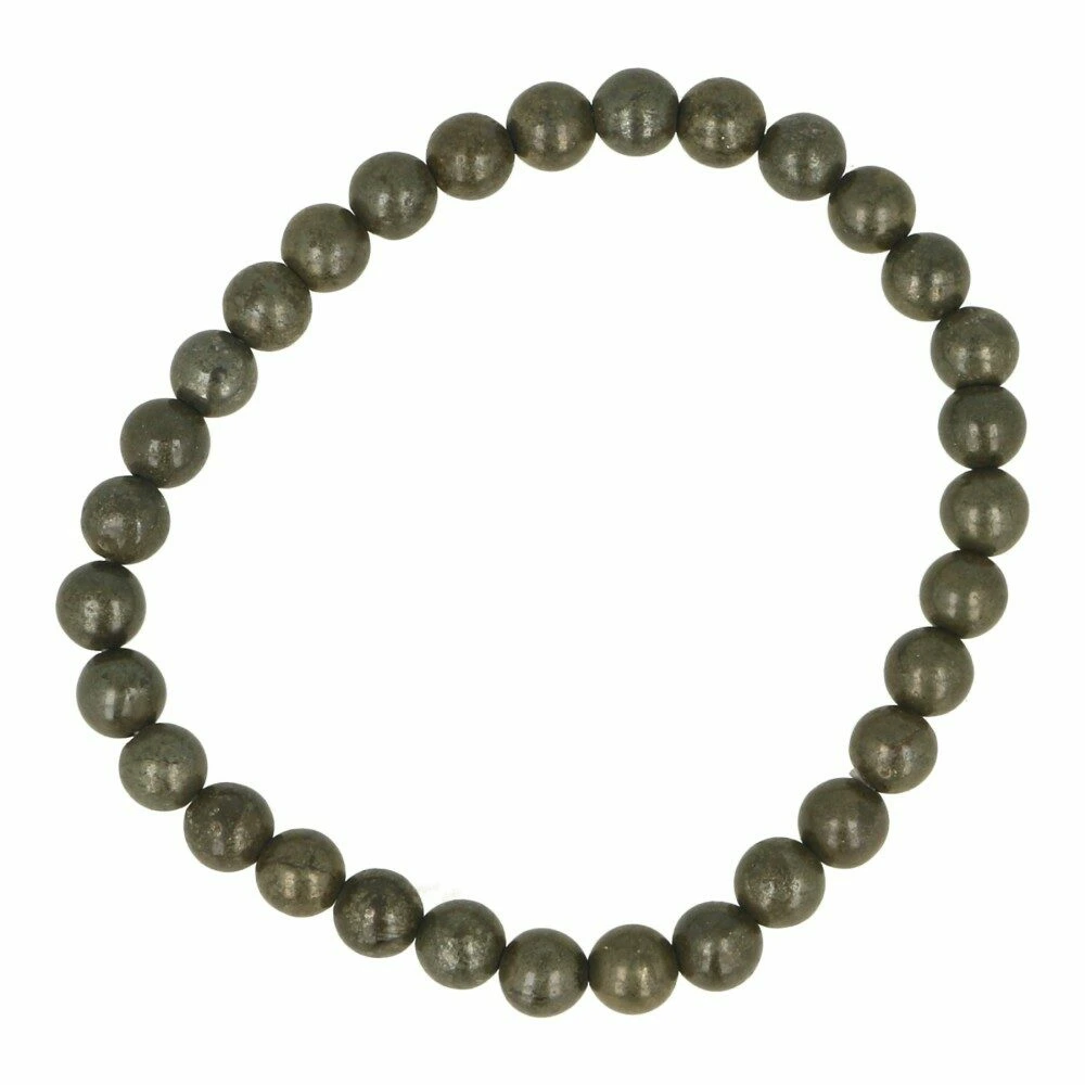 Pyriet armband met kralen van 6mm aan rekbaar koord. Je ontvangt een soortgelijke pyriet armband als op de foto. De armband heeft een lengte die past bij een polsomtrek van ongeveer 16-17cm.