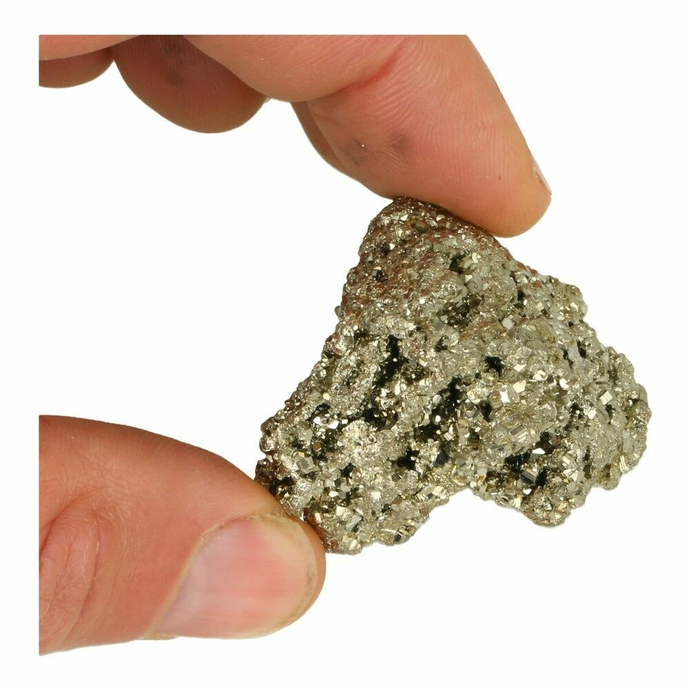 Fraaie stukjes pyriet ruw van 3-5cm lang uit Peru met mooie kleine kristallen. Deze stukjes pyriet hebben een mooie glans met fraaie kristallen aan alle zijdes. Je ontvangt een soortgelijk stukje pyriet als op de foto’s.