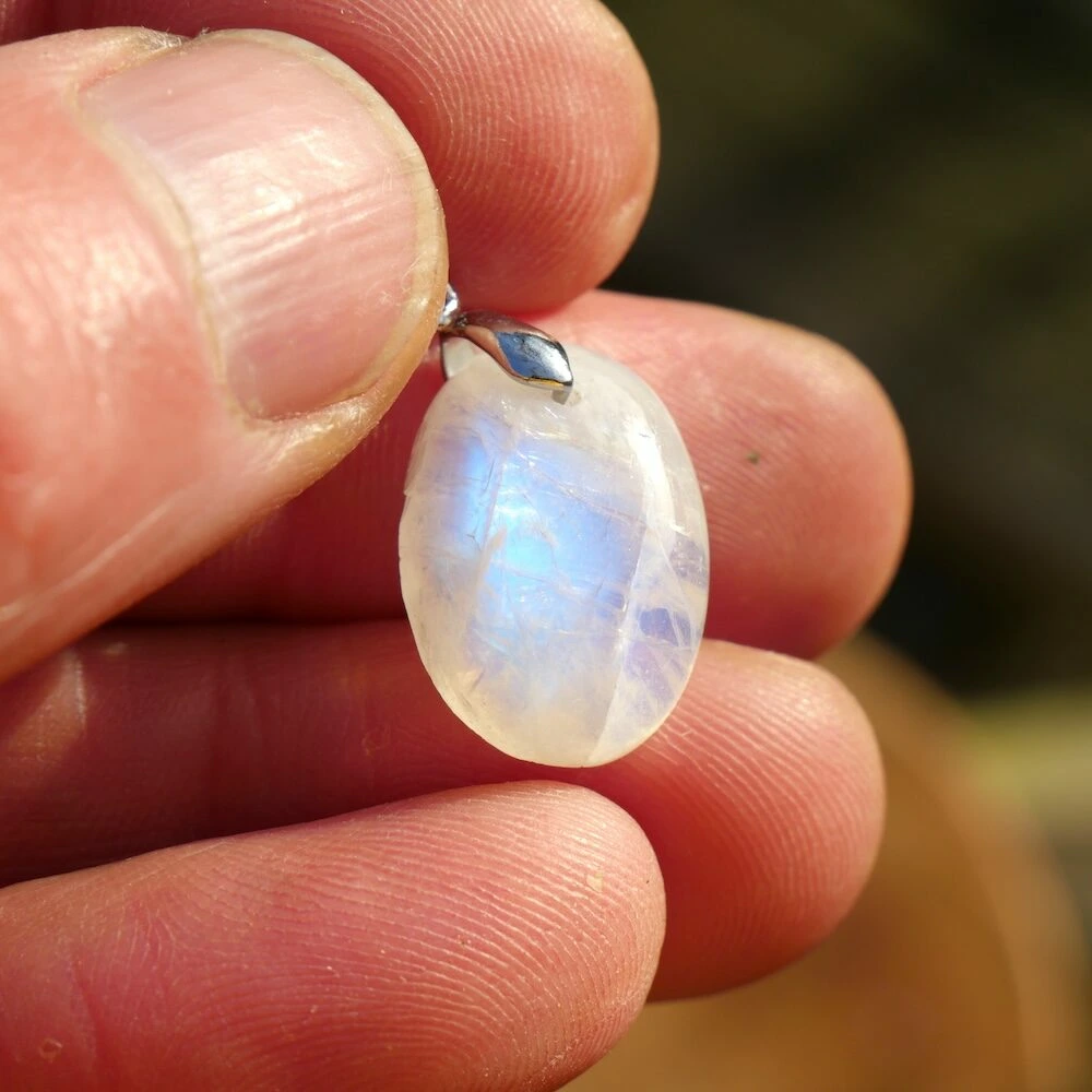 Mooie A-kwaliteit regenboog maansteen hanger met zilveren oogje ovaal. Onder de juiste hoek heeft deze regenboog maansteen hanger de kenmerkende meerkleurige gloed van regenboogmaansteen. Deze fraaie hanger is doorschijnend en heeft een subtiele witte kleur. Alle hangers zijn secuur door ons uitgezocht op energie en flash, dus ze zijn allemaal mooi. De afmeting van de maansteen is ongeveer 2cm hoog en 14-15mm breed. De glans is moeilijk op de foto te ‘vangen’, dus in het echt is de hanger nog mooier :-).