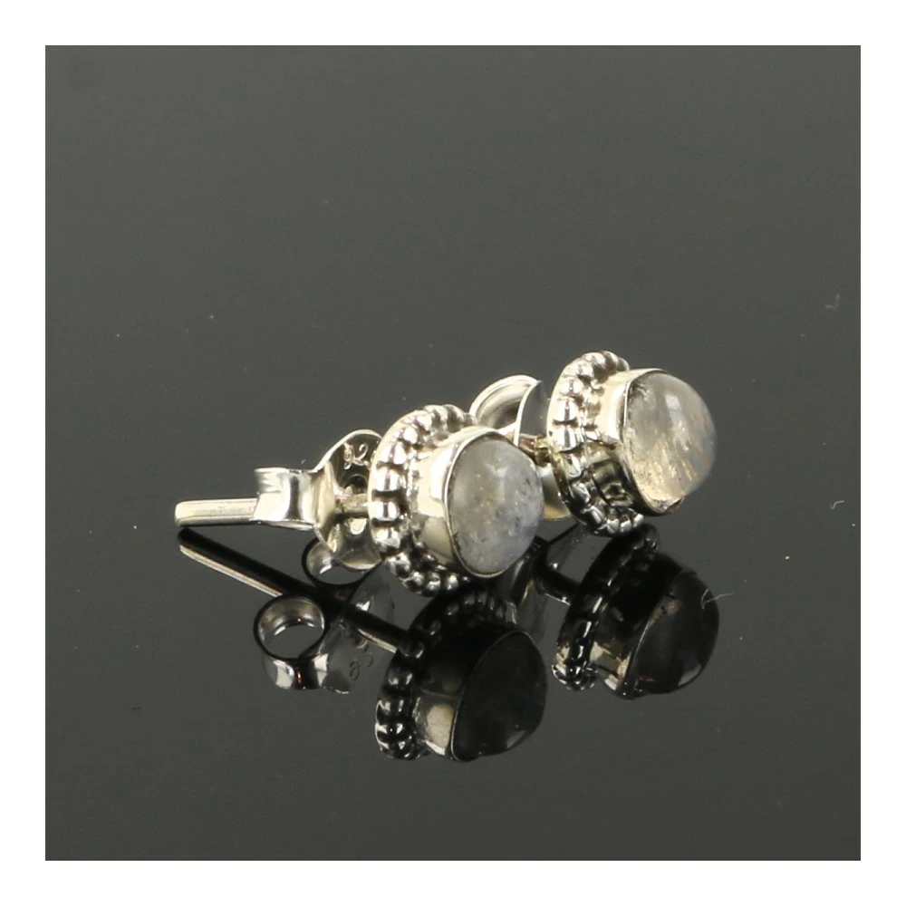 Regenboog maansteen oorbel in zilver 4mm ‘nr1’