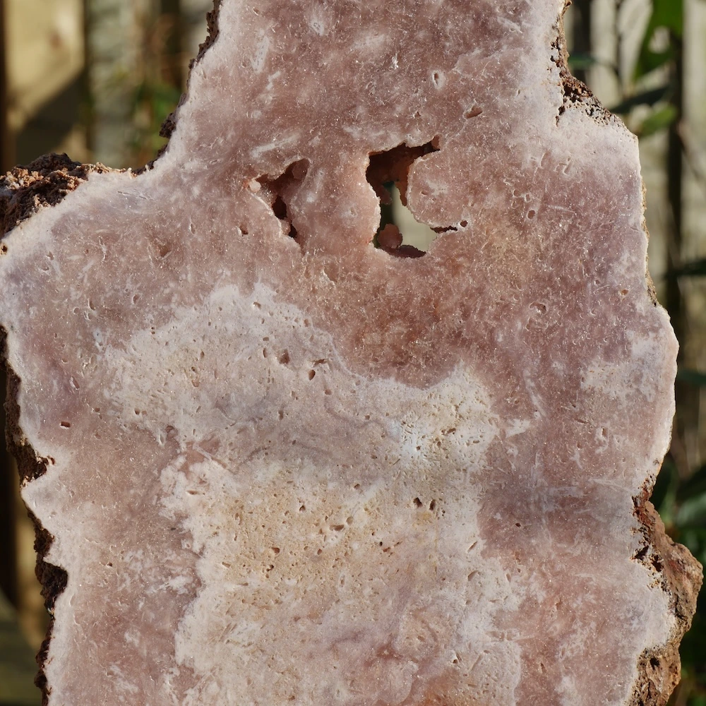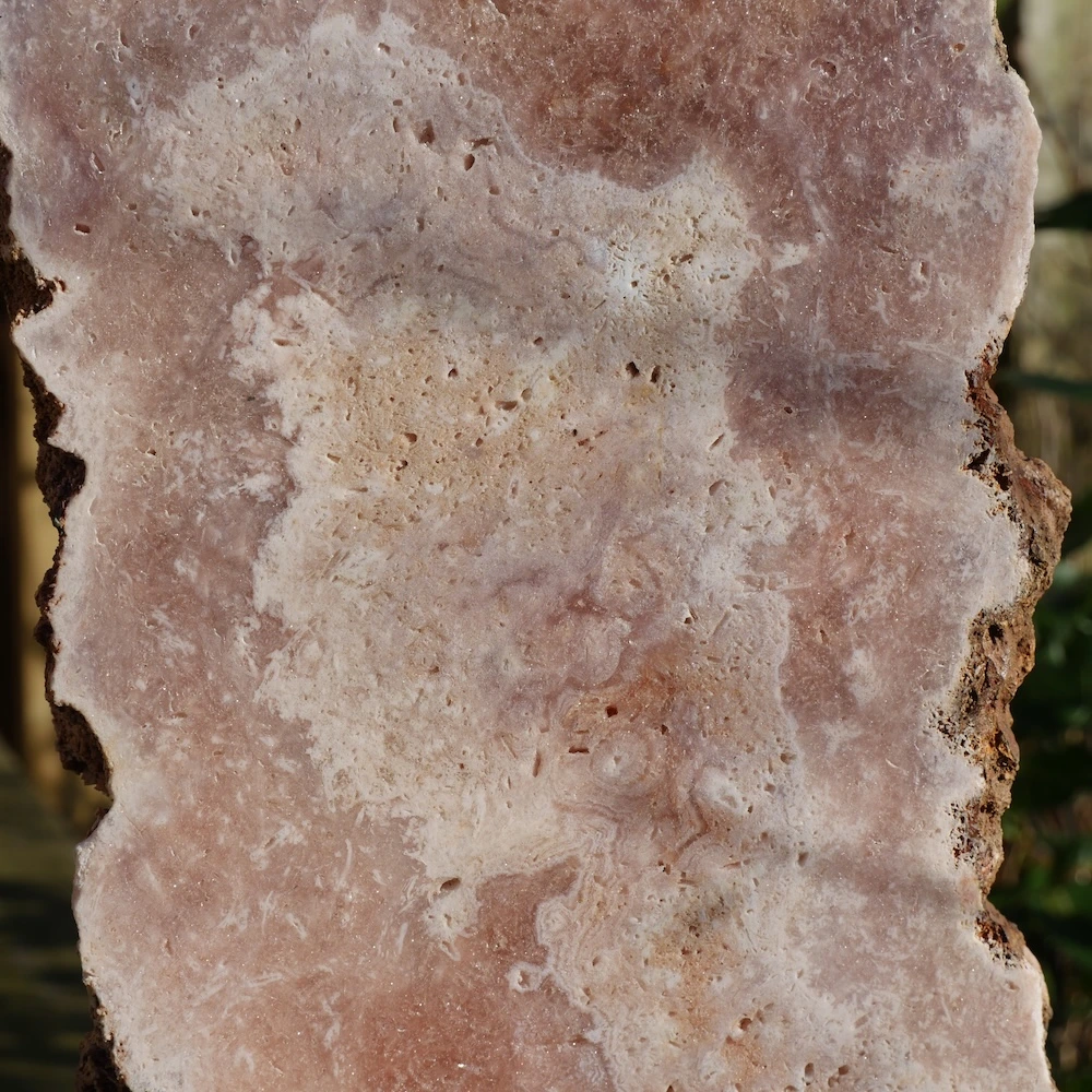 Roze chalcedoon uit Brazilië werkt meer aardend op het spirituele lichaam. Ze helpt je om spirituele inzichten op een zachte manier te integreren en ondersteunt je om je veilig te voelen tijdens spirituele groei. De steen brengt rust in je energetisch veld.