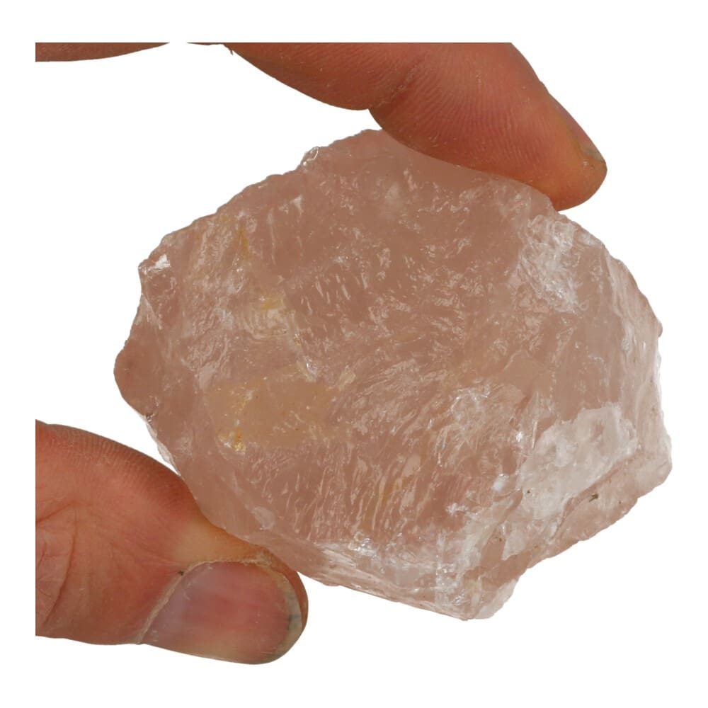 Mooie heldere rozenkwarts ruw met een afmeting van ca 4-6cm lang, breed en hoog. Deze ruwe brokken rozenkwarts lenen zich uitstekend om een ruimte mee te vullen door er een aantal in de hoeken neer te leggen, maar kunnen ook goed gebruikt worden in een gouden driehoek, of om van te genieten.