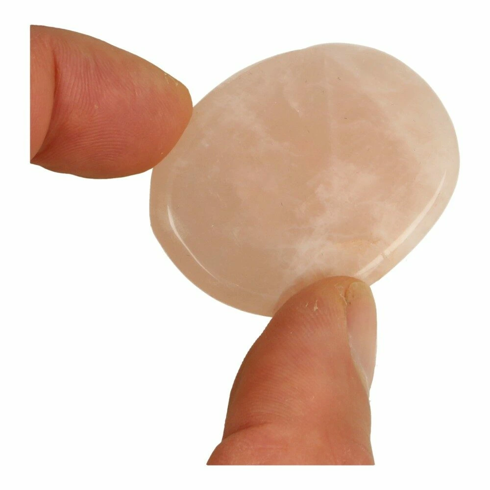 Fijne rozenkwarts zaksteen of oplegsteen van circa 4,5-5cm lang, 4-5cm breed en 1-1,5cm dik. Deze mooie rozenkwarts zaksteen kun je goed gebruiken om bij je te dragen, maar is ook zeer geschikt als oplegsteen tijdens meditatie of behandeling. Je ontvangt een soortgelijk rozenkwarts zaksteen als op de foto.