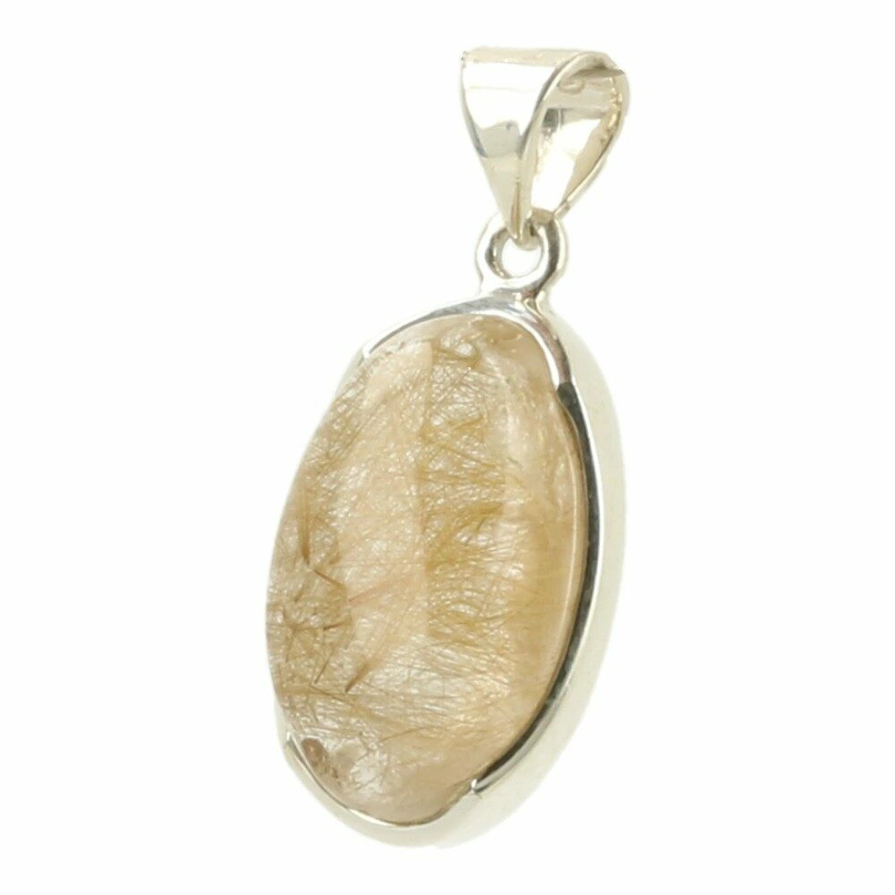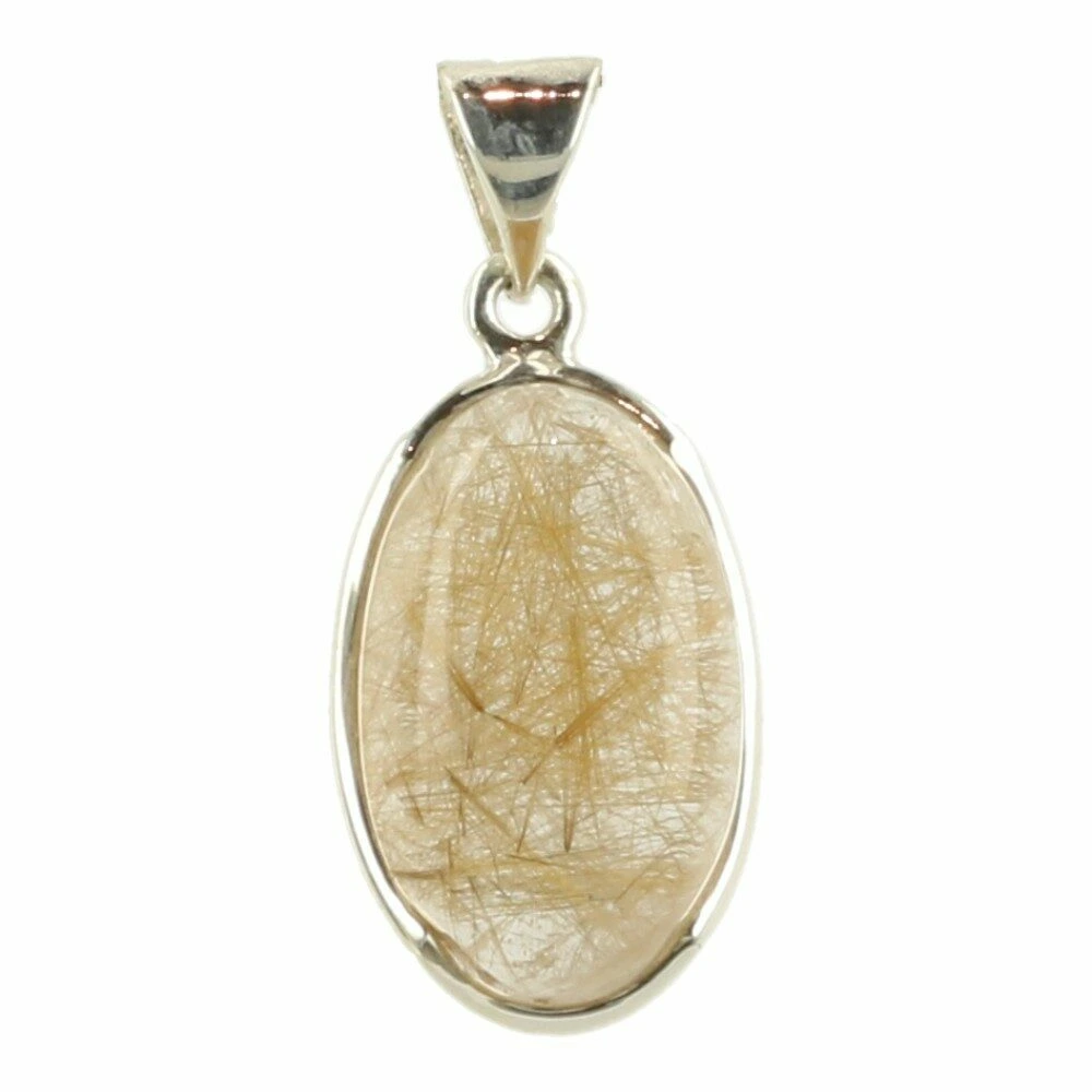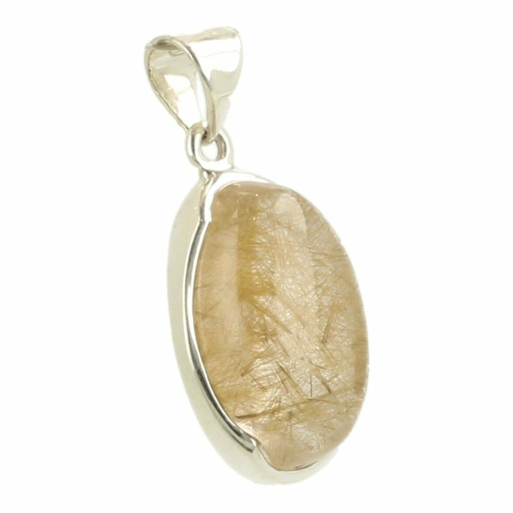 Fraaie gouden rutielkwarts hanger ‘nr5’ gevat in juwelierskwaliteit zilver (925 sterling). Je kunt de gouden rutielnaaldjes goed zien in de geslepen bergkristal. De afmeting van de rutielkwartssteen in de hanger is ongeveer 21mm hoog en 13mm breed. Je ontvangt de rutielkwarts hanger van de foto.