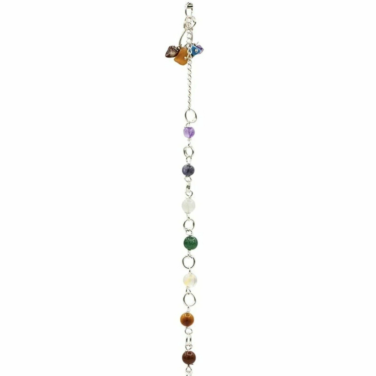 De 7 chakra mineralen aan de ketting zijn: amethist, ioliet, blauwe aventurijn, groene aventurijn, gele aventurijn, carneool en rode jaspis.