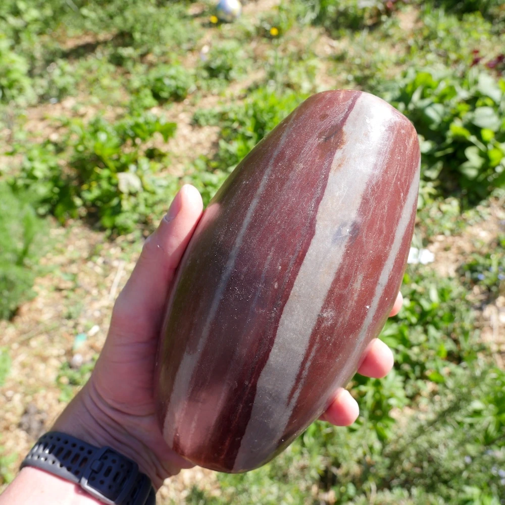 Fraaie grote Shiva lingam van ongeveer 19,5cm lang en een maximale doorsnede van circa 10cm uit India. Je ontvangt deze grote Shiva lingam van de foto.