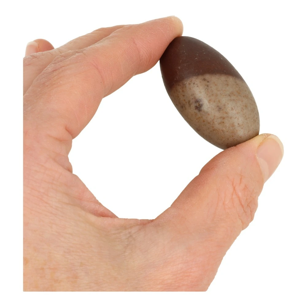 Fijne Shiva lingam van ongeveer 4-4,5cm lang uit India. Je ontvangt een soortgelijke Shiva lingam als op de foto.
