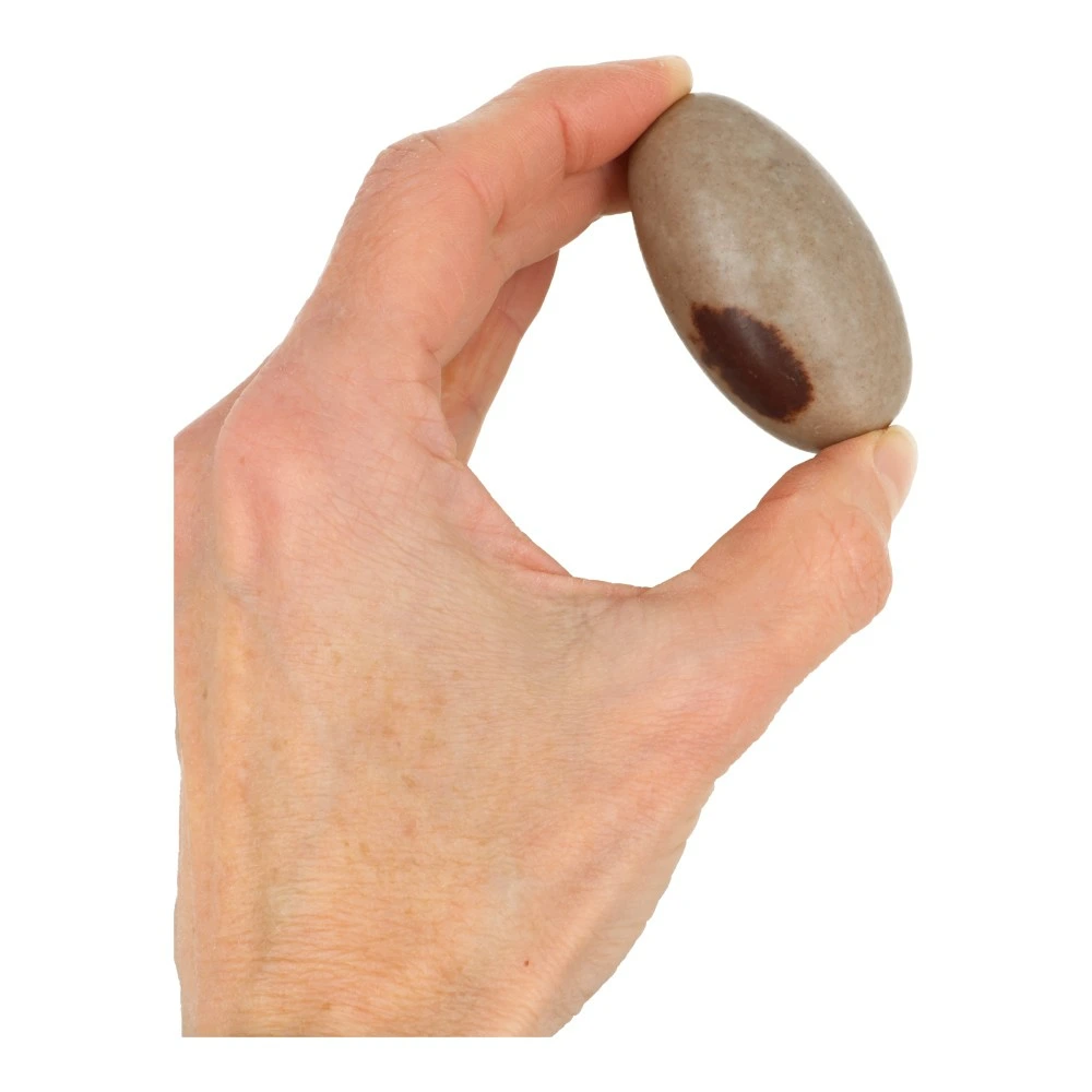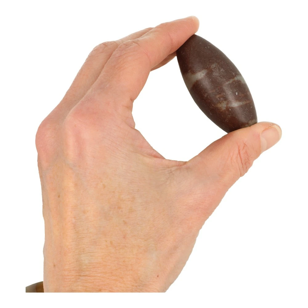 Fijne Shiva lingam van ongeveer 6cm lang uit India. Je ontvangt een soortgelijke Shiva lingam als op de foto.