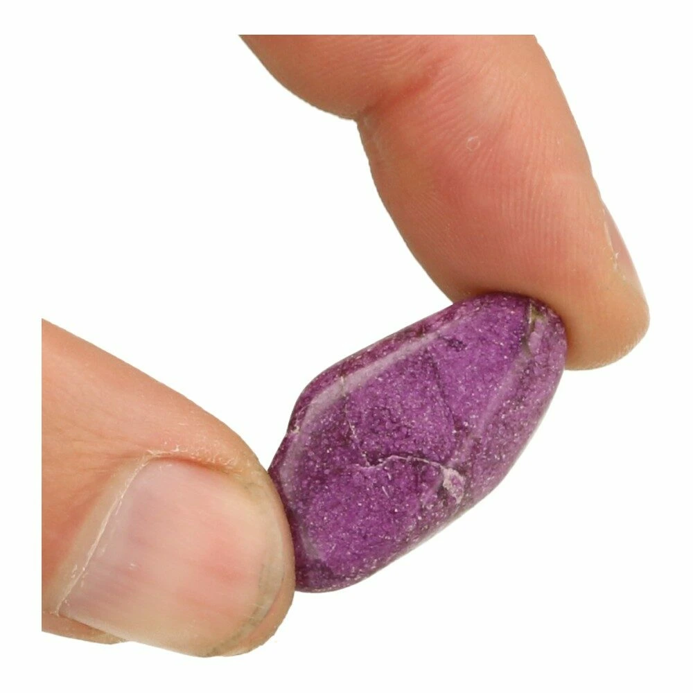 Fraaie paarse stichtiet trommelsteen of kleine knuffelsteen uit Zuid-Afrika. De afmeting van deze stichtiet trommelsteen is ongeveer 2,5-3cm aan de langste zijde. Je ontvangt een soortgelijke stichtiet trommelsteen als op de foto.