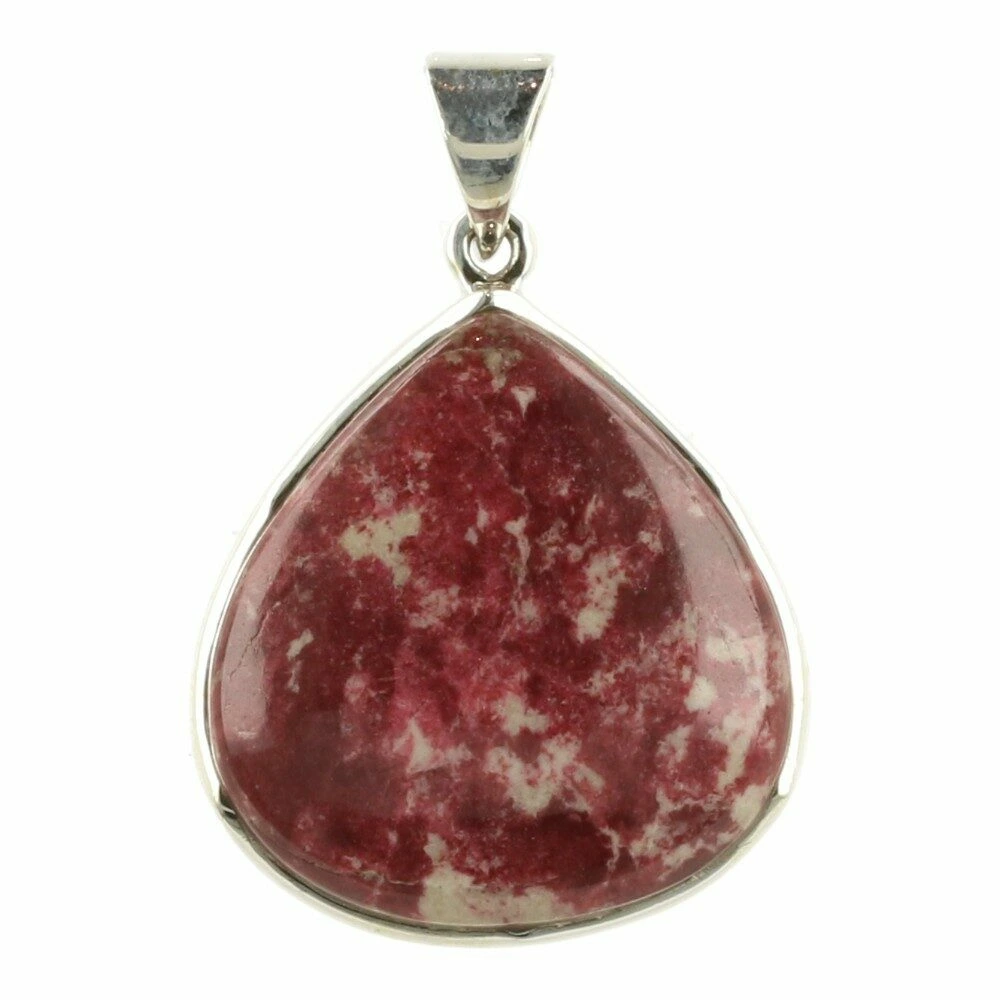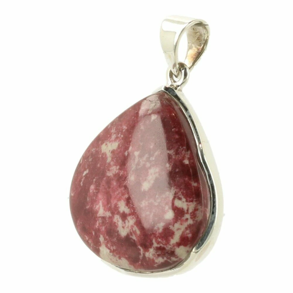 Fraaie rode thuliet hanger in zilver ‘nr1’ uit Noorwegen. Thuliet is een roodachtige steen, soms vermengd met kwarts. De mooi getekende thuliet is in juwelierskwaliteit 925 sterling zilver gezet. De afmeting van de thuliet steen in de hanger is ongeveer 25mm breed en 27mm hoog. Je ontvangt de thuliet hanger in zilver van de foto.
