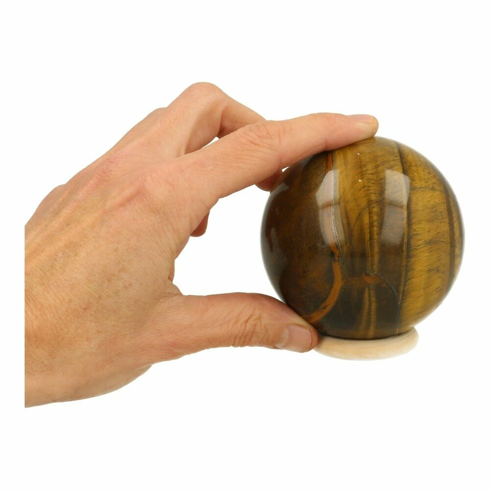 Fraaie tijgeroog bol met een diameter van circa 81mm uit Zuid-Afrika. Deze fraaie bol heeft de kenmerkende goudglans van tijgeroog. Deze tijgeroog bol is in het echt nog veel mooier dan op de foto’s. Je ontvangt deze tijgeroog bol van de foto op een houten ringetje.
