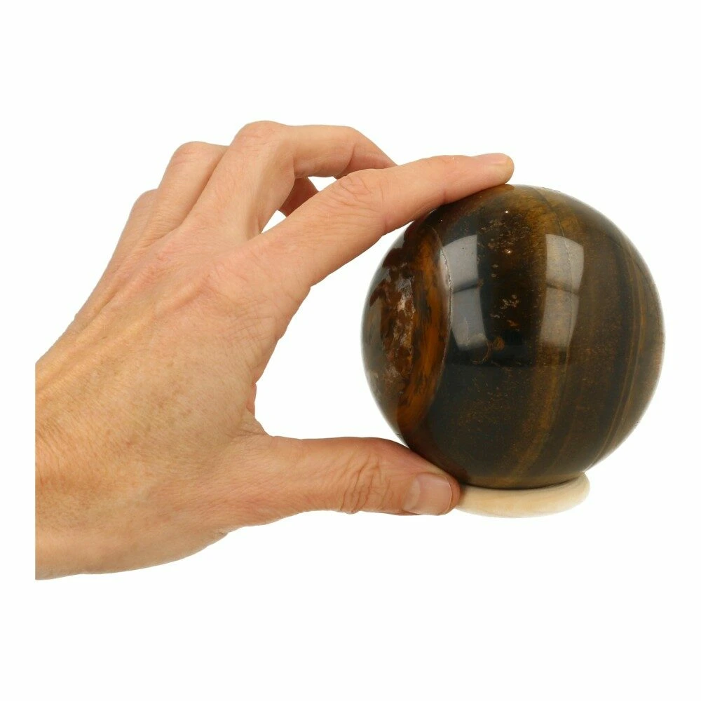 Fraaie tijgeroog bol met een diameter van circa 87mm uit Zuid-Afrika. Deze fraaie bol heeft de kenmerkende goudglans van tijgeroog. Je ontvangt deze tijgeroog bol van de foto op een houten ringetje. In het echt komt de gouden glans veel mooier naar voren. De ‘nr2’ is een aanduiding van het product en heeft verder geen betekenis.