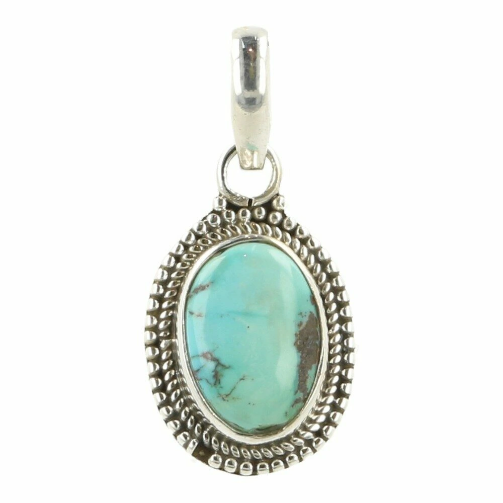Mooie, echte turquoise hanger in zilver ‘nr8’. Hoge kwaliteit turkoois hanger in volledig juwelierskwaliteit 925 sterling zilver. De afmeting van de turquoise steen in de hanger is ongeveer 13mm hoog en 8mm breed. Je ontvangt de turquoise hanger in zilver van de foto.