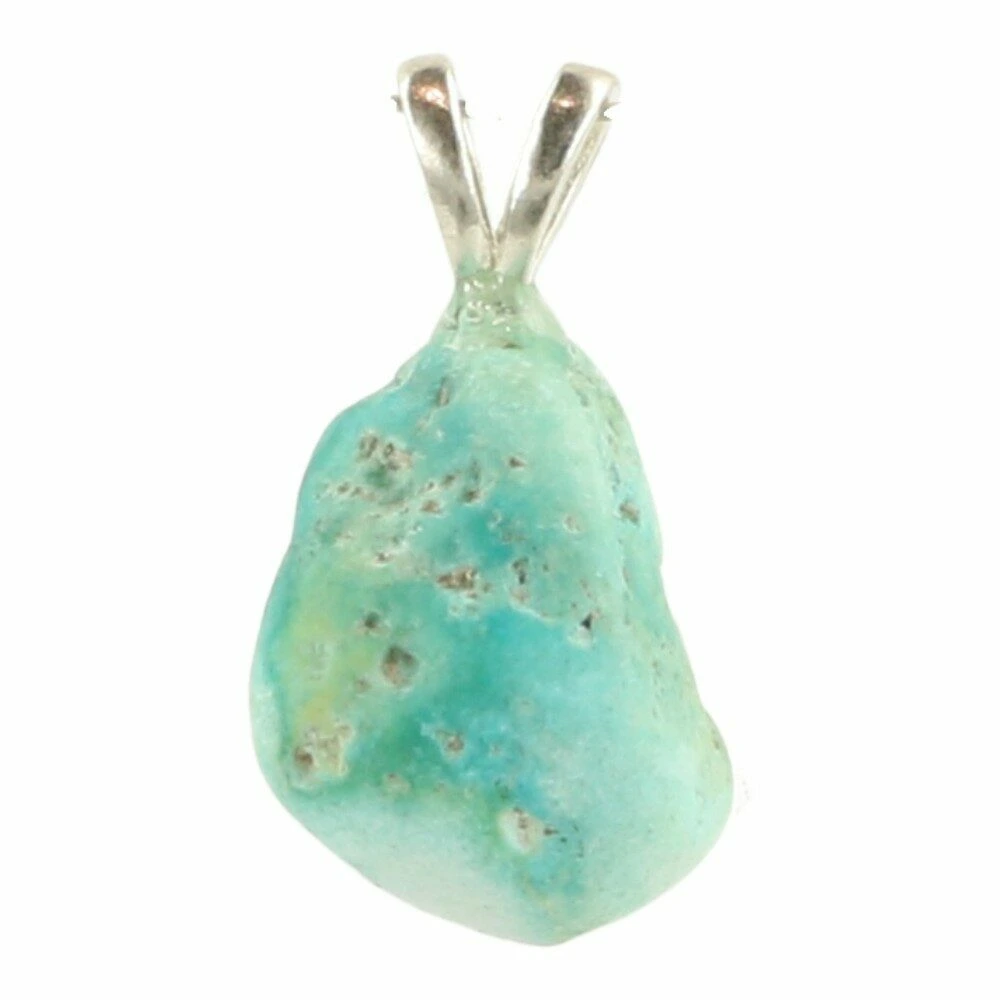 Mooie, echte turquoise hanger met oogje van zilver uit eigen productie. Dit zijn hangers van echte turquoise. Je ontvangt de turquoise hanger zonder koord en kunt deze mooi dragen aan een zilveren ketting. De afmeting van de turquoise is circa 1,5cm hoog en 1-1,5cm breed. Je ontvangt een soortgelijke hanger als op de foto.
