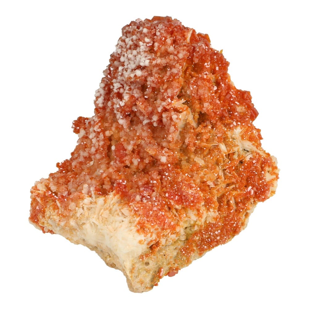Mooi stuk vol met fraaie vanadiniet kristallen op roze bariet uit Marokko. De afmeting van dit stuk vanadiniet ruw is ongeveer 7 x 7 x 5,5cm. Dit stuk is aan alle kanten mooi om te zien, heeft een diepe rode kleur en bevat fraai gevormde vanadiniet kristallen. Naast dit fijne stuk hebben we meerdere stukken vanadiniet op bariet op voorraad, neem hiervoor contact met ons op via de app of email. Je ontvangt het stuk van de foto.