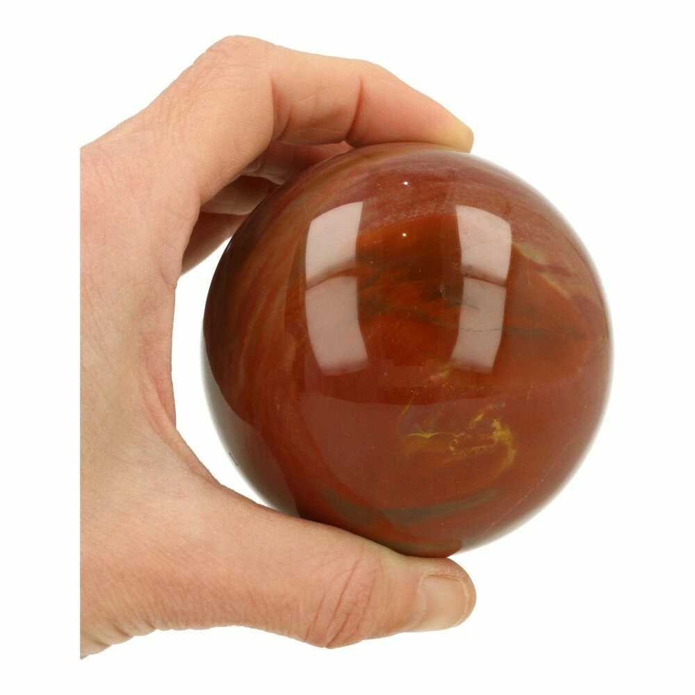 Mooie versteend hout bol met een diameter van ca 76mm uit Madagaskar. Echt een uniek stuk met hele mooie kleuren. Versteend hout is fossiel geworden boomstam van miljoenen jaren oud. Ieder stuk is uniek, deze bol heeft prachtige variaties in kleuren en is vanaf iedere zijde anders. Je ontvangt de bol van de foto met houten ring.