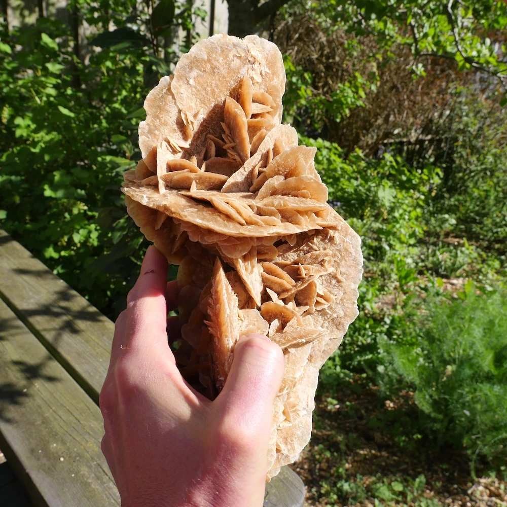 Naast de algemene werking van seleniet heeft woestijnroos een meer aardende component. Woestijnroos geeft balans en helpt je om je basis te ontspannen. Hierdoor kun je makkelijker zakken in je lichaam en jouw licht laten stralen over de wereld. Een fijne metgezel om je frequentie hoog te houden en dit hier op aarde te laten zien. Integratie van universum en aarde.
