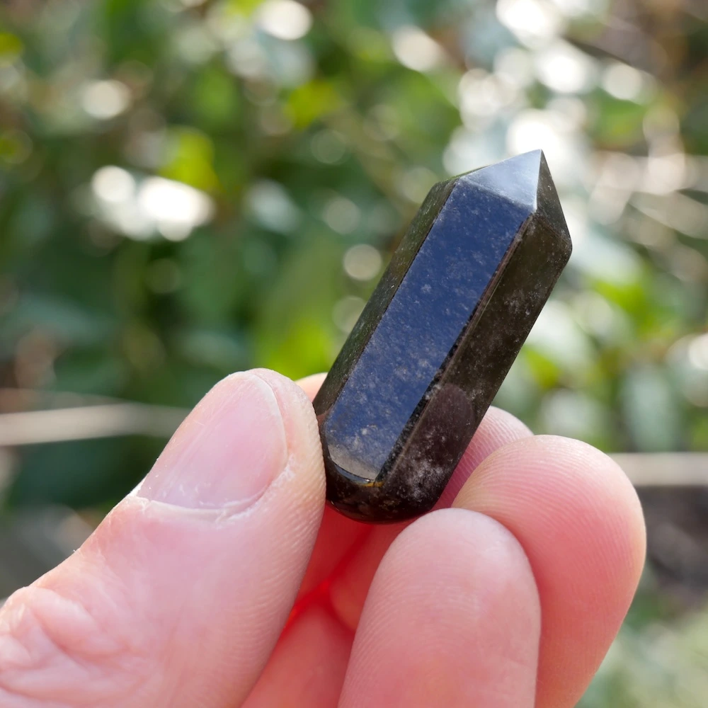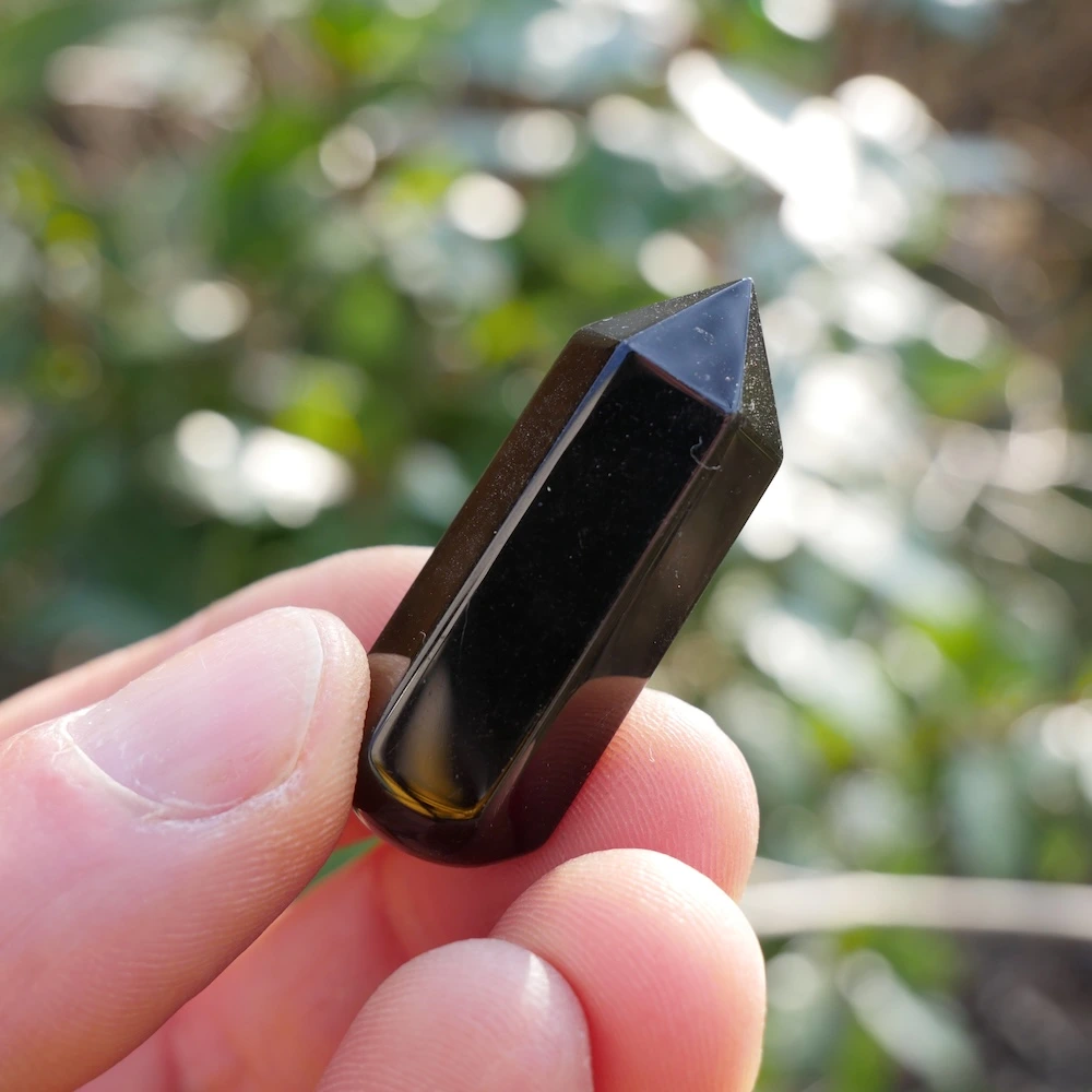 Mooie zwarte met zilveren glans obsidiaan massagesteen van circa 5cm lang en 2cm hoog en diep. Deze zeshoekige massagestaaf heeft een bolle onderkant en spitse punt, zodat je zowel de spieren kunt masseren als meridiaanpunten kunt stimuleren. Je ontvangt een soortgelijke zilverglans obsidiaan massagestaaf als op de foto.