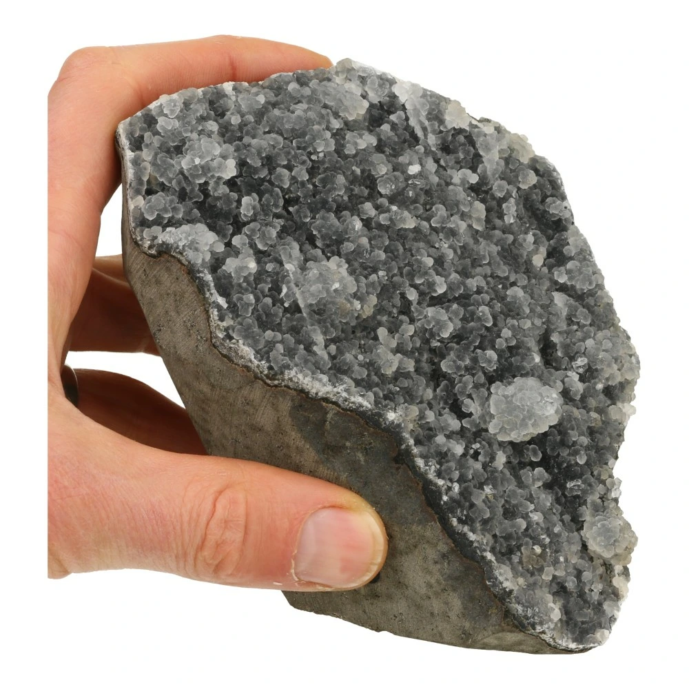 De gekristalliseerde zwarte chalcedoon uit India heeft een kalme, liefdevolle energie die je uitnodigt om te vertragen en te vertrouwen. Het is een steen die je helpt om steviger te staan, zonder hard te worden.