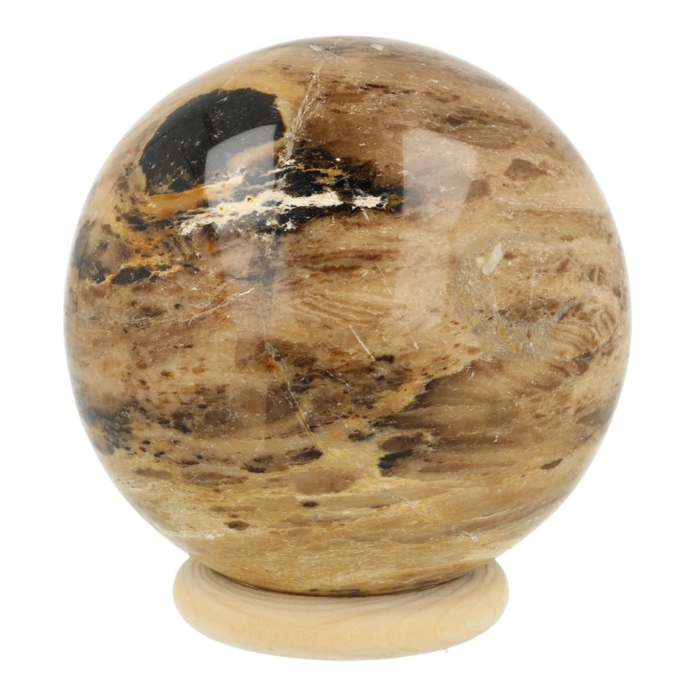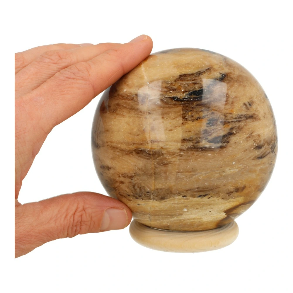 Fijne zwarte opaal bol met een diameter van 94mm en houten ring uit Madagaskar. Deze zwarte opaal bol heeft een heldere en zachte energie, die je uitnodigt te openen en de muren rondom je gevoel en sensitiviteit te laten zakken. Je ontvangt de zwarte opaal bol van de foto.